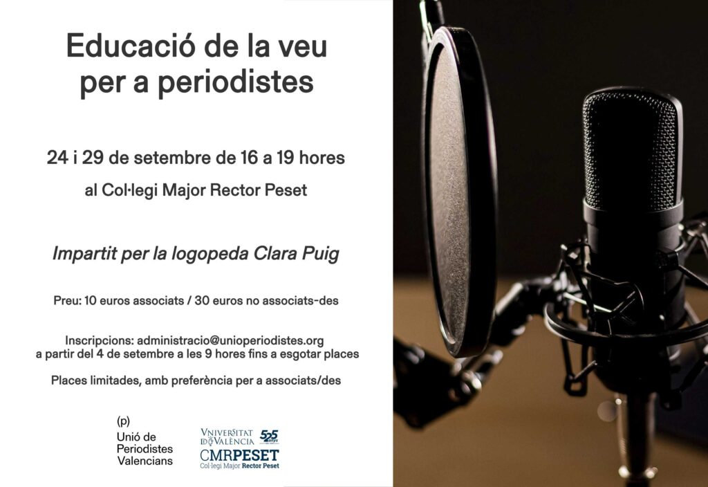 Este taller d’educació de veu, impartit per la logopeda Clara Puig, va dirigit a periodistes, comunicadors o professionals dels mitjans de comunicació que utilitzen la veu com a eina principal de treball. Està pensat tant per a professionals de ràdio, televisió, pòdcasts i altres formats audiovisuals, els quals tinguen interés a millorar la cura de la seua veu i previndre disfonies.