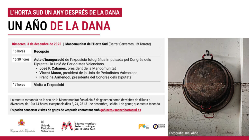 L’exposició “Un any de la DANA”, mostra que recull la mirada dels i les fotoperiodistes que van documentar els efectes devastadors de la Dana que va colpejar la Comunitat Valenciana el 29 d’octubre de 2024, viatja del Congrés dels Diputats a les localitats de la zona zero.